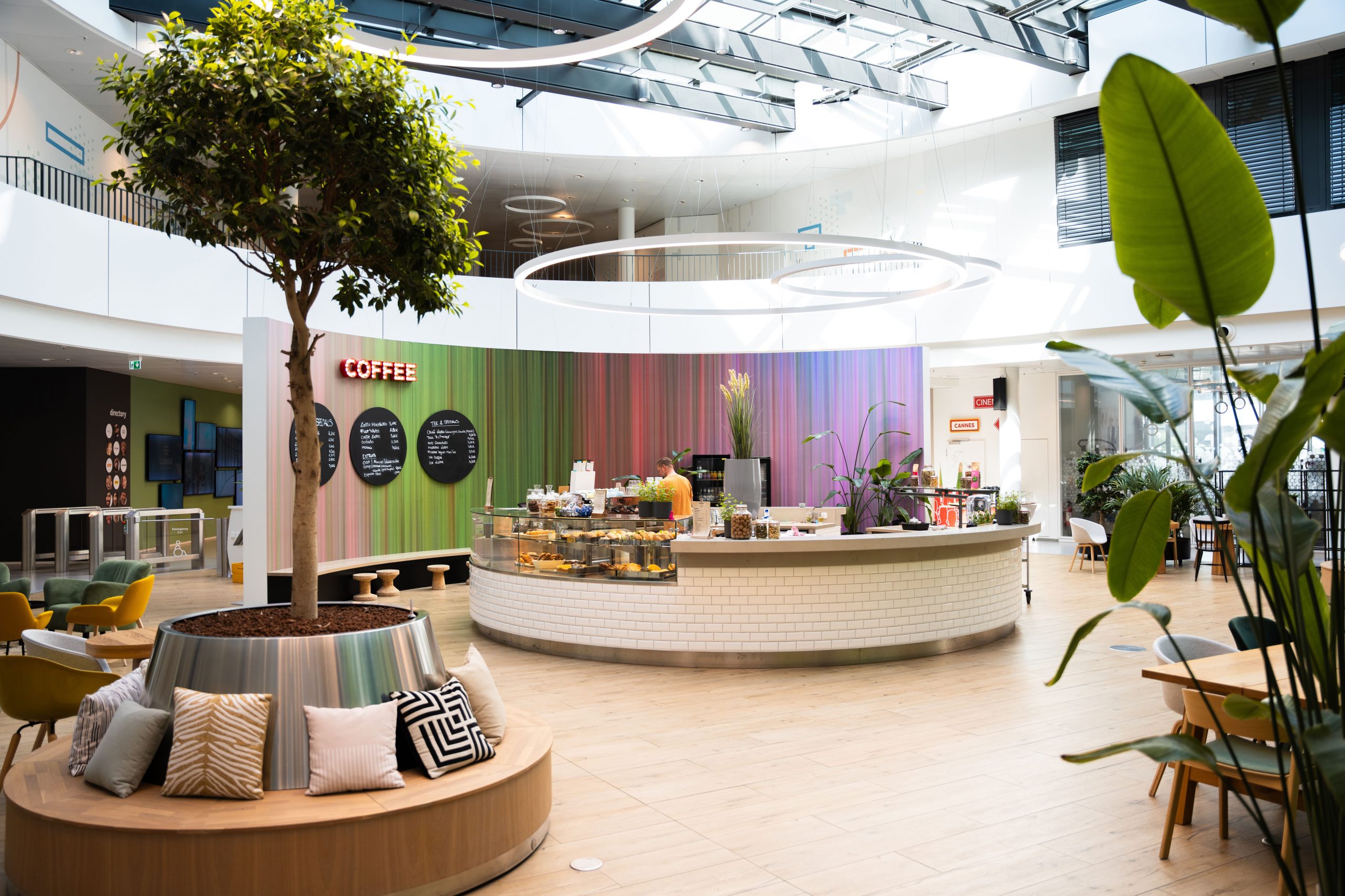 Den eigentlichen Unterschied machen jedoch die Angebote neben dem Schreibtisch: Im Erdgeschoss lockt die Culture Kitchen mit offener Showküche, gegenüber sorgt die Barista-Bar für Kaffeegenuss auf höchstem Niveau. Beide Gastronomien sind öffentlich zugänglich und schaffen Orte des Austauschs über die Bürowände hinaus. Exklusiv für Mieter und Mieterinnen stehen Fitness- und Yogaräume zur Verfügung. Ein Coach bringt mit der wöchentlichen bewegten Mittagspause Mobility in den Arbeitstag. Ein besonderes Highlight ist das hauseigene Kino mit 64 Sitzplätzen – auch für kreative Meetings, Präsentationen oder After-Work-Events. Damit aus Nachbarn eine echte Community entsteht, setzt die IMMOFINANZ Deutschland auf regelmäßige Aktionen im Jahresverlauf: von Karnevalsveranstaltungen über Weihnachtsaktionen mit Wunschbaum im Foyer bis zu gemeinsamen RhineCleanUps. „Hier arbeitet man nicht nur, hier kommt man gerne hin und fühlt sich zu Hause“, sagt Julia Siegers, Country Managerin der IMMOFINANZ Deutschland.