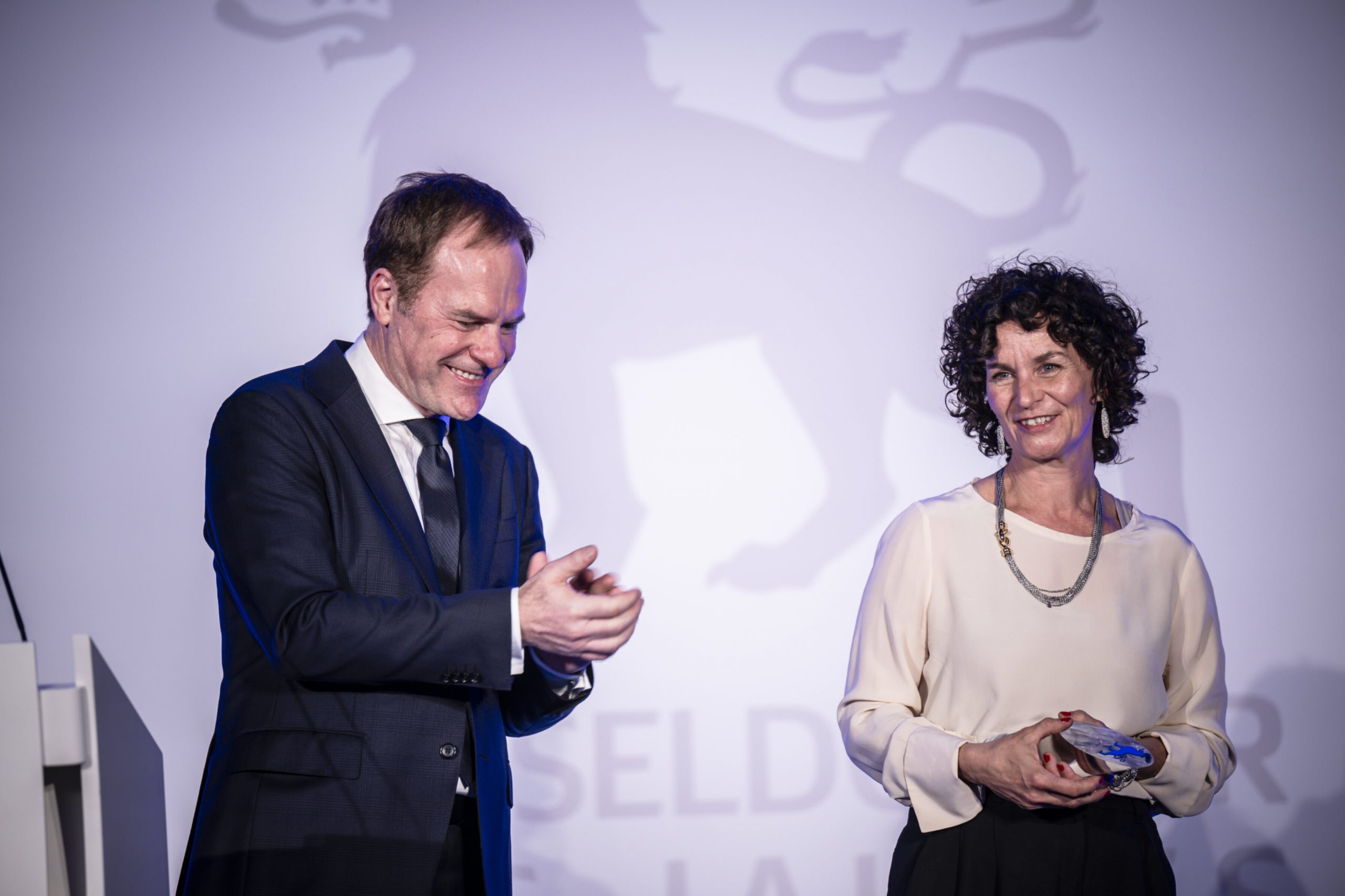 OB Dr. Stephan Keller überreichte Carla Meurer die Auszeichnung Düsseldorferin des Jahres für ihr Engagement im Ehrenamt.