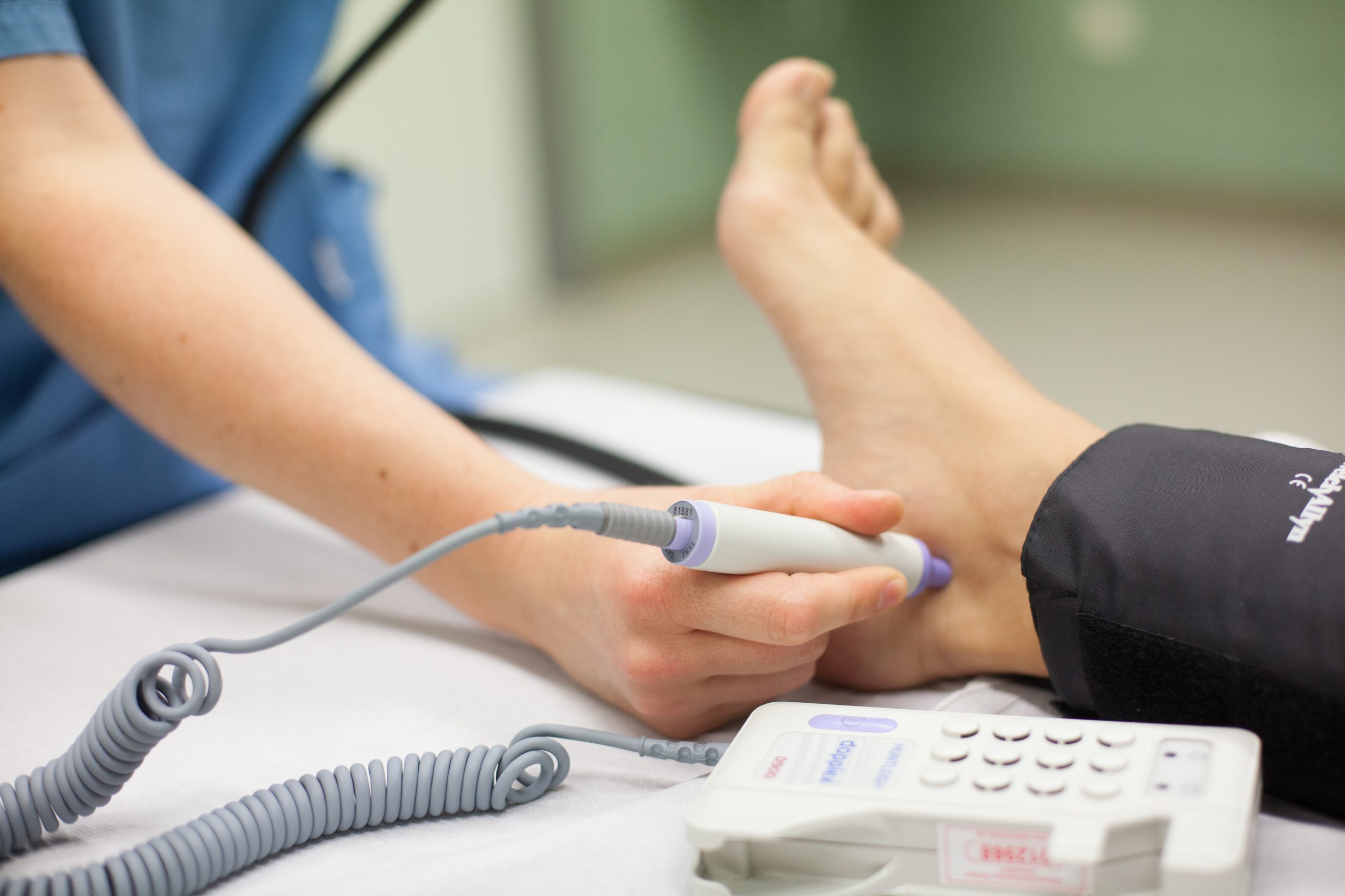 Mit der Blutdruckmessung an Knöchel und Arm wird das kardiovaskuläre Risiko eingeschätzt, um eine periphere aterielle Verschlusskrankheit (pAVK) frühzeitig zu erkennen.