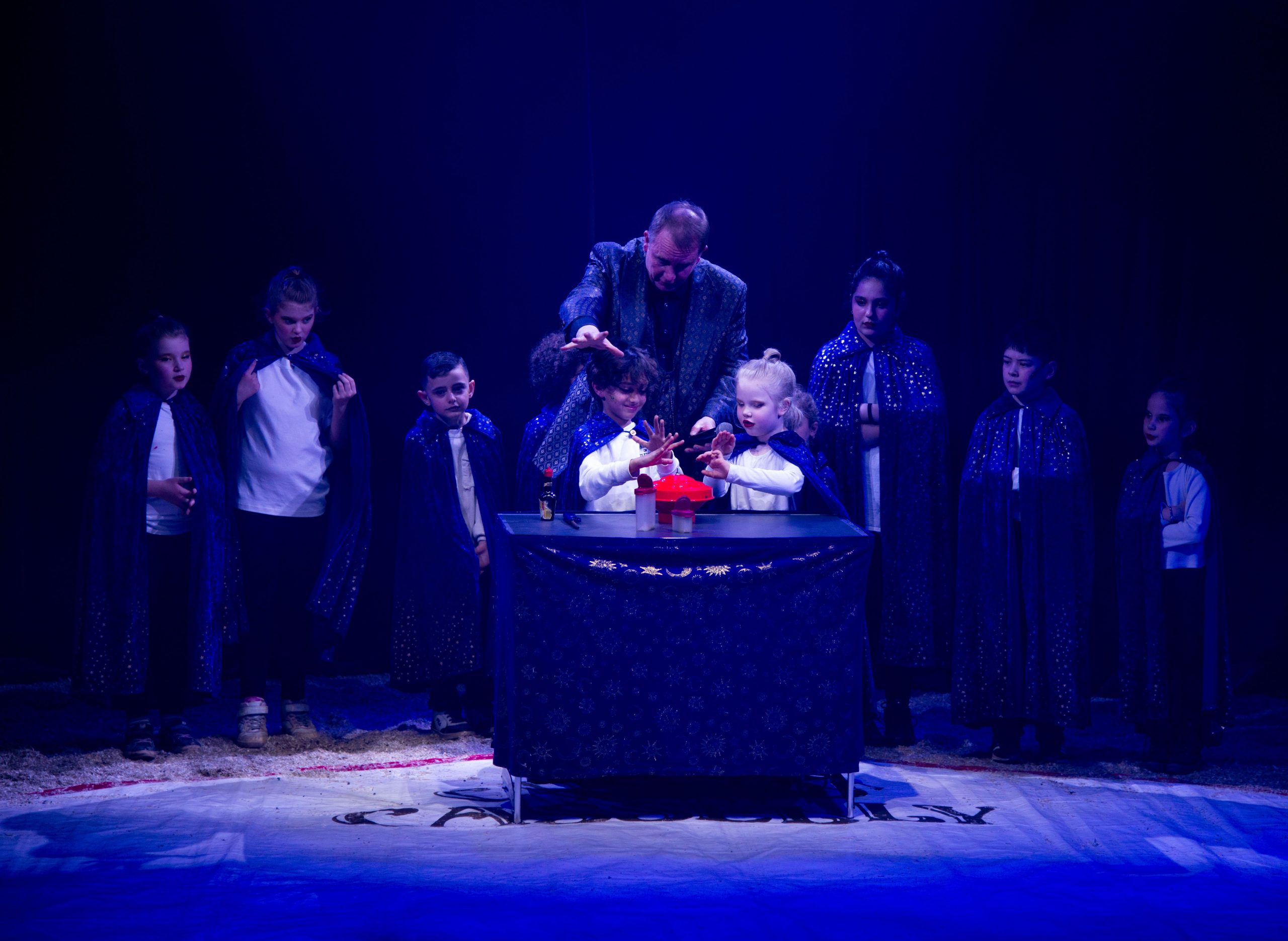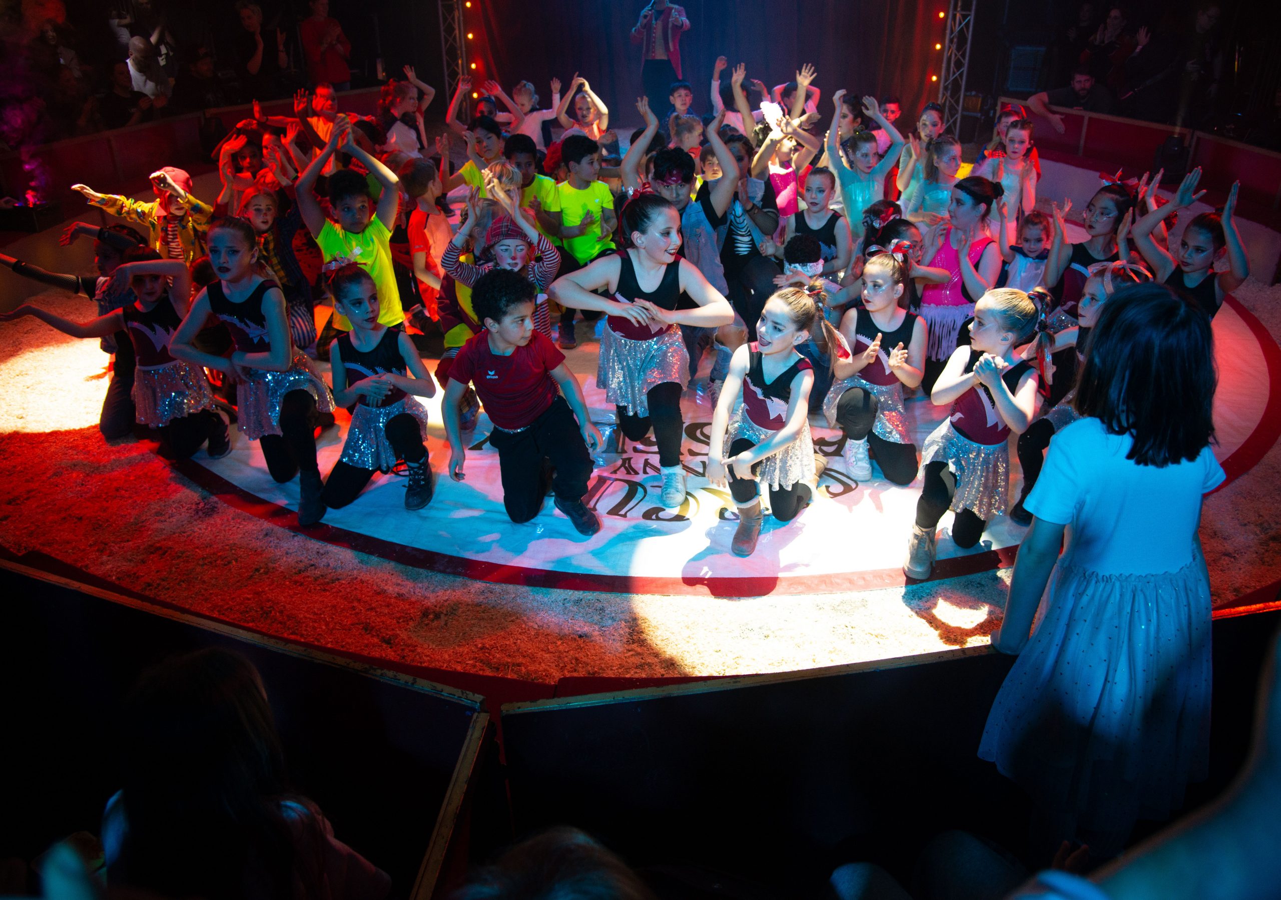 Eines der Talente ist Helena, 9 Jahre, sie ist zusammen mit Tom, 8 Jahre, in der Trampolingruppe. Noch lieber wäre Helena in die Trapezgruppe gegangen. „Aber die Trampolingruppe fand ich auch cool und da kann man auch fliegen.“ Ali, neun Jahre alt, entschied sich für die Clown-Gruppe. Zusammen mit einem Freund und sieben weiteren Clowns hatte er eine klare Mission: Herrn Casselly ärgern. Lampenfieber? Fehlanzeige. „Wir hatten ja eine Generalprobe“, sagt er trocken. Seinen Berufswunsch hat die bunte Zirkuswelt nicht auf den Kopf gestellt: Ali möchte Fußballspieler werden oder Verkäufer in einem Dönerladen.